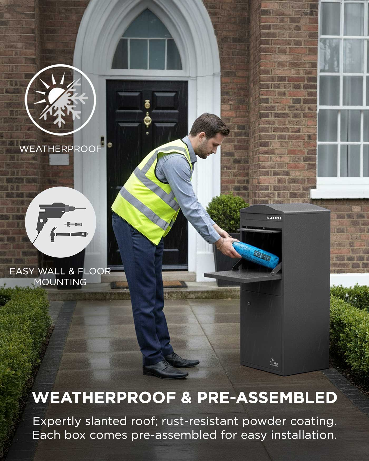 Each parcel box is very simple to install and comes fully assembled.
