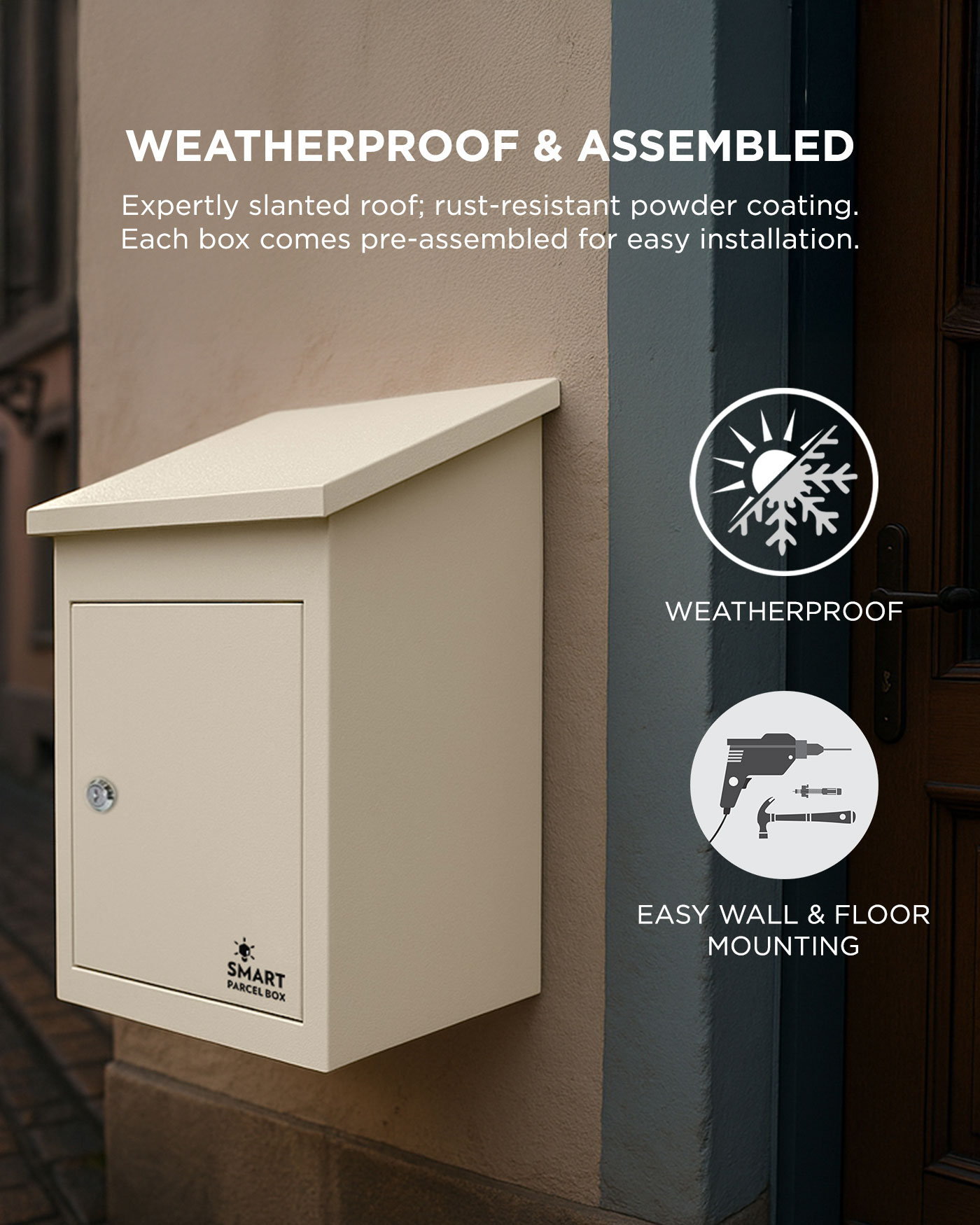 Each parcel box is very simple to install and comes fully assembled. It simply needs to be fixed to a concrete surface - which anyone with reasonable DIY experience can do! Please see our installation instructions for detailed written advice and a helpful video. Unfortunately, we are not able to provide an installation service.